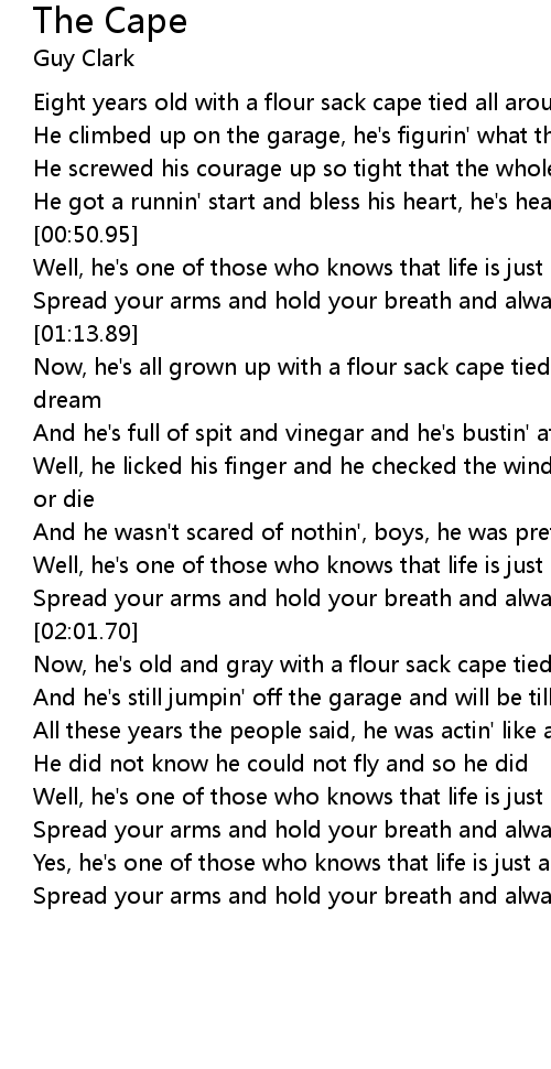 Spread your arms and hold your breath and always trust your cape |