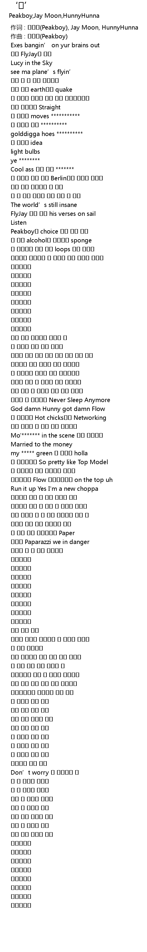 | [00:00.000] | zuò cí : Peakboy, Jay Moon, HunnyHunna |