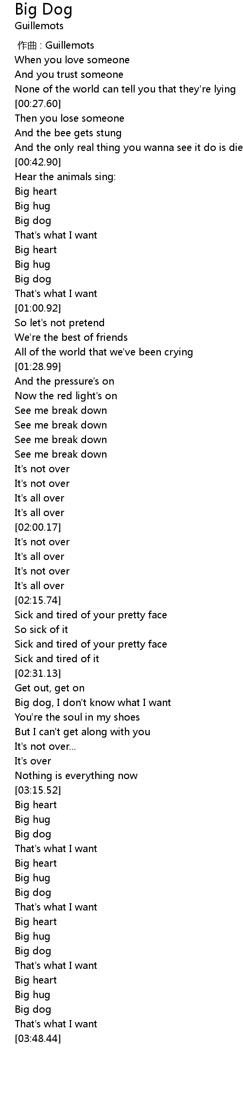 | [03:29.81] | Big dog |