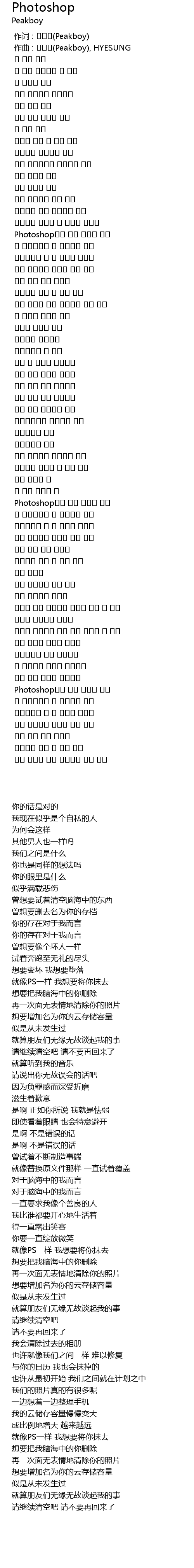 | [02:58.283] | Photoshop처럼 너를 지우고 싶어 |