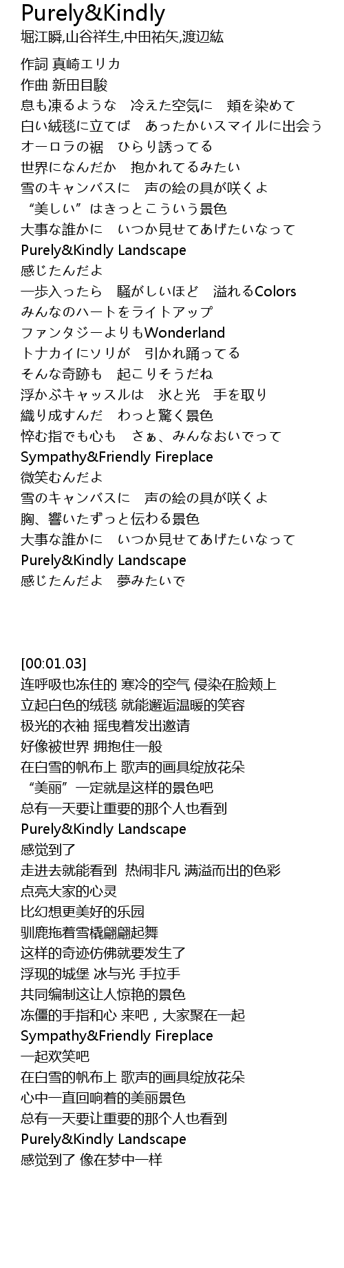 | [00:56.58] | 雪のキャンバスに 声の絵の具が咲くよ |