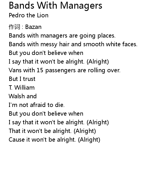 | That it won' t be alright. Alright | |