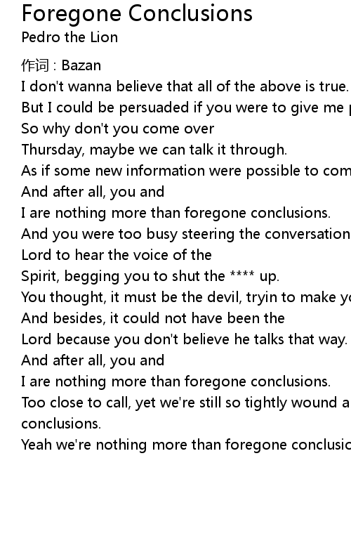 | Too close to call, yet we' re still so tightly wound around our foregone conclusions. | |