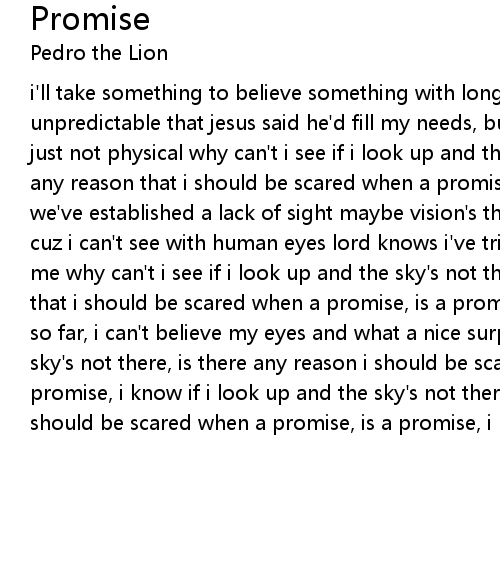 i'll take something to believe something with long sleeves, cuz it's unpredictable that jesus said he'd fill my needs, but my heart still bleeds he's just not physical why can't i see if i look up and the sky's not there, is there any reason that i should be scared when a promise, is a promise, i know now we've established a lack of sight maybe vision's the right word for what i need, cuz i can't see with human eyes lord knows i've tried to follow where he leads me why can't i see if i look up and the sky's not there, is there any reason that i should be scared when a promise, is a promise, i know for what i've seen so far, i can't believe my eyes and what a nice surprise if i look up and the sky's not there, is there any reason i should be scared when a promise, is a promise, i know if i look up and the sky's not there, is there any reason i should be scared when a promise, is a promise, i know |