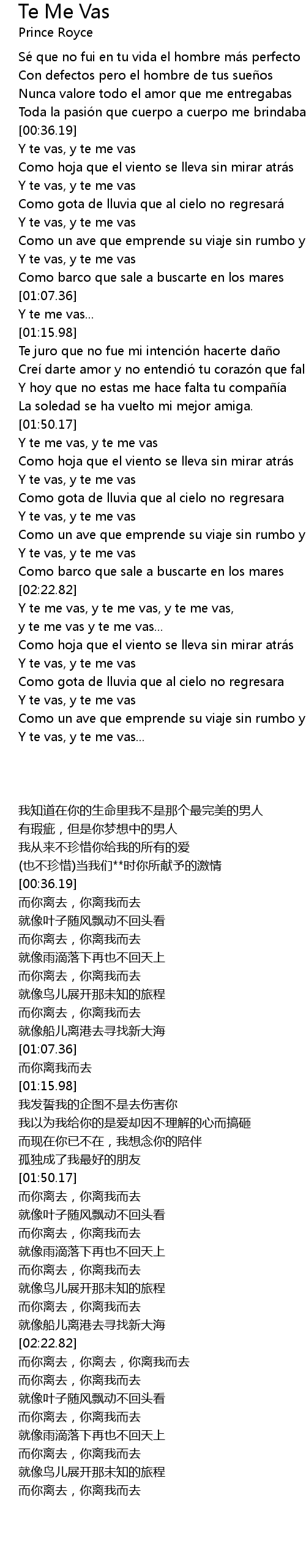 | [00:59.36] | Y te vas, y te me vas |