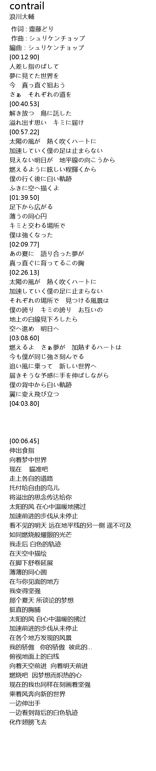 | [03:02.37] | 空へ進め 明日へ |