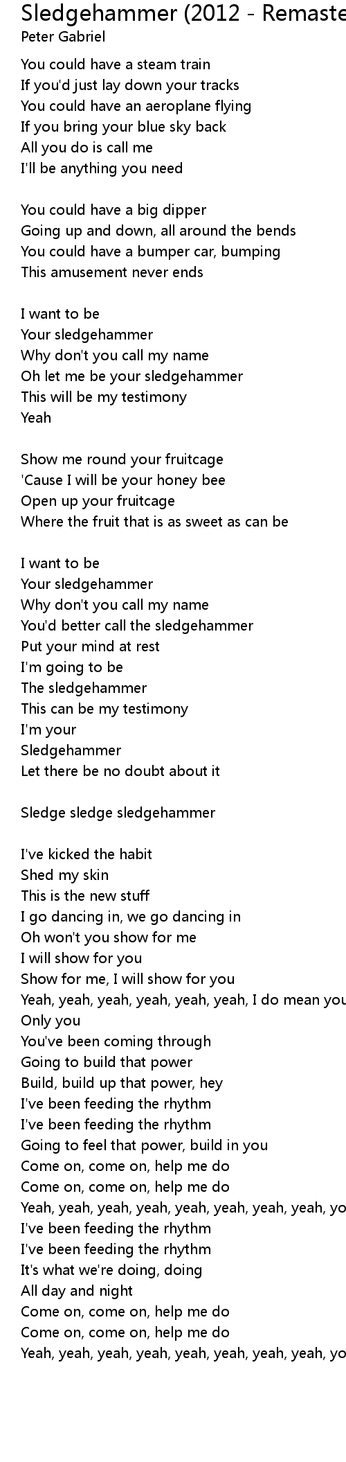 Oh let me be your sledgehammer |
