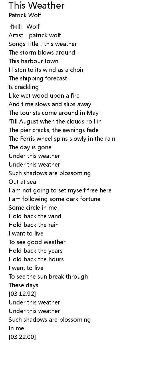 | [01:21.77] | The Ferris wheel spins slowly in the rain |