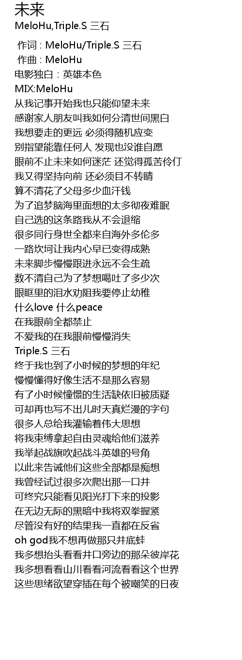 | [00:00.000] | 作词 : MeloHu/Triple.S 三石 |