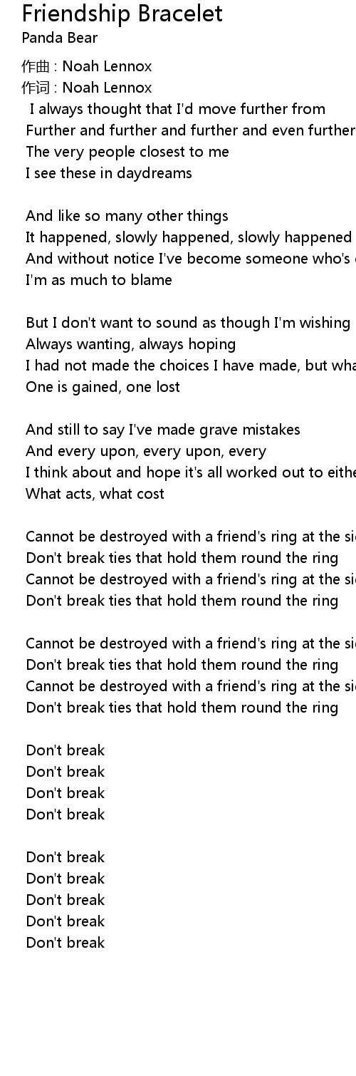 | 歌曲 | Friendship Bracelet |