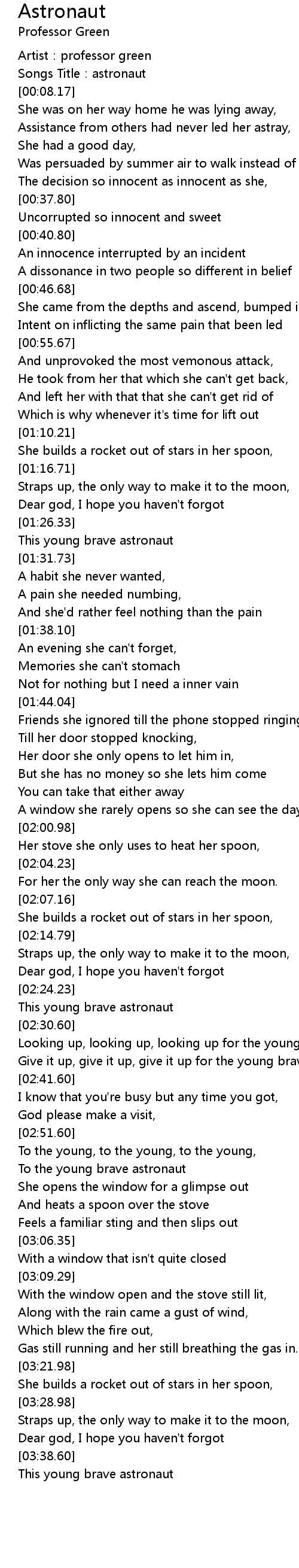 | [02:55.91] | To the young brave astronaut |