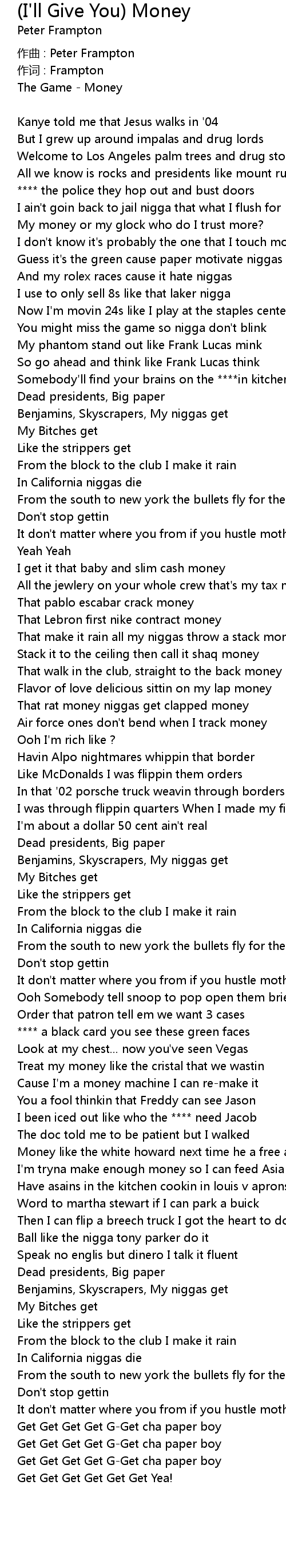 | Ooh Somebody tell snoop to pop open them briefcases | |