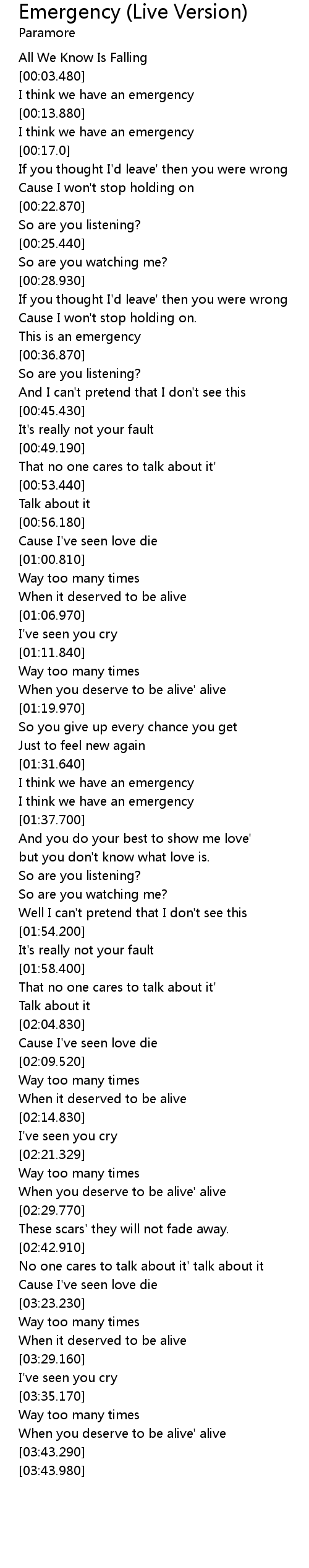 | [00:02.600] | All We Know Is Falling |