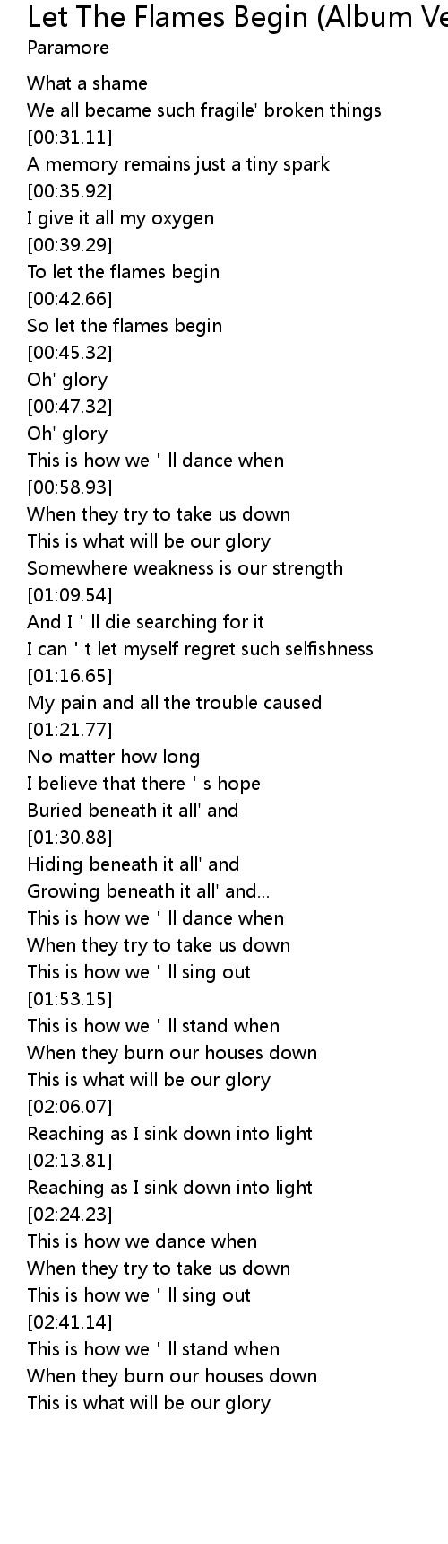 | [00:40.72] | To let the flames begin |