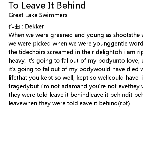 | 歌曲 | To Leave It Behind |