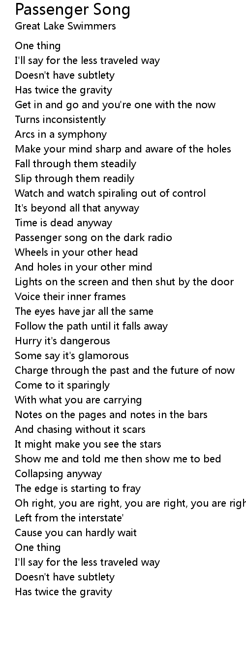 Passenger song on the dark radio |
