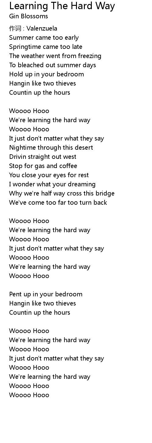 | 歌曲 | Learning The Hard Way |
