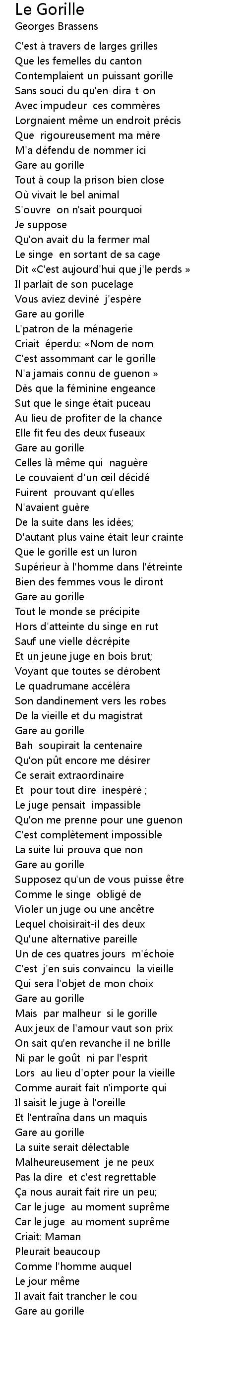 | 歌曲 | Le Gorille |