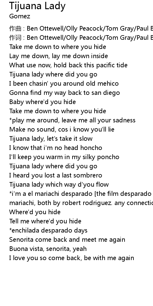 | Tijuana lady which way d' you flow | |