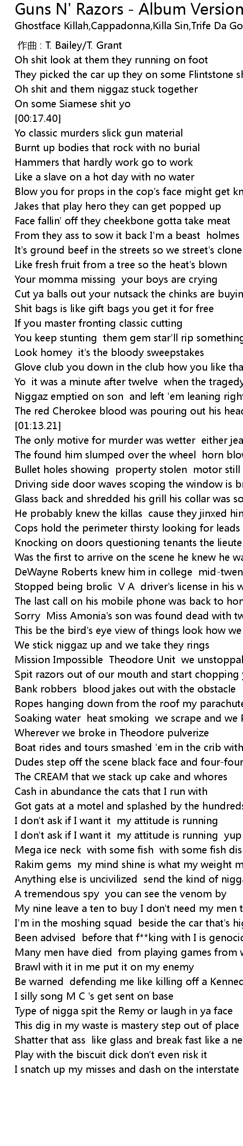 | 歌曲 | Guns N' Razors - Album Version (Explicit) |