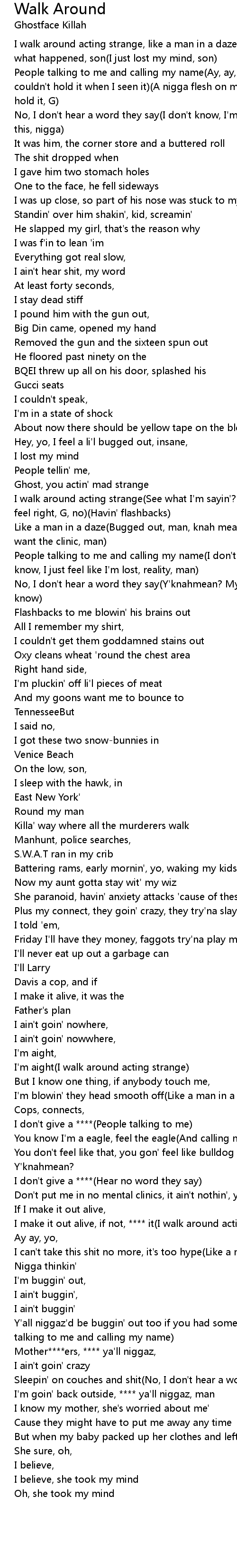 I make it out alive, if not, **** it(I walk around acting strange) |