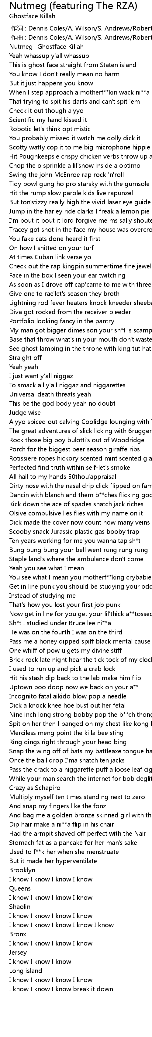 | [00:00.00] | Nutmeg Ghostface Killah |