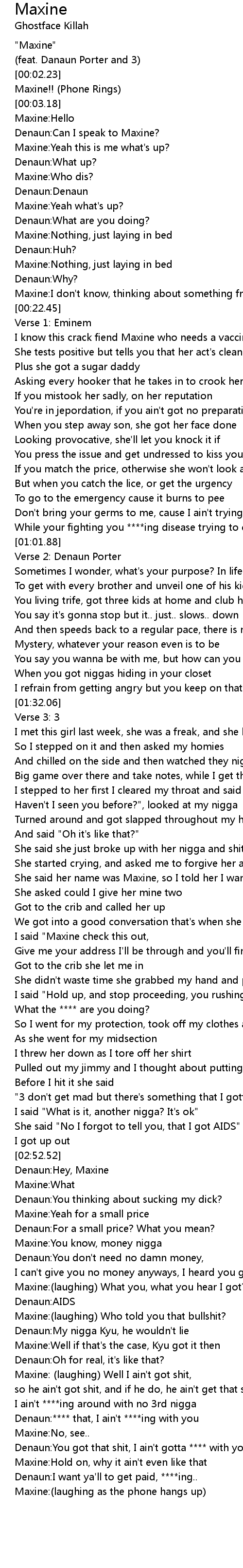 Maxine: (laughing) Well I ain't got shit, |