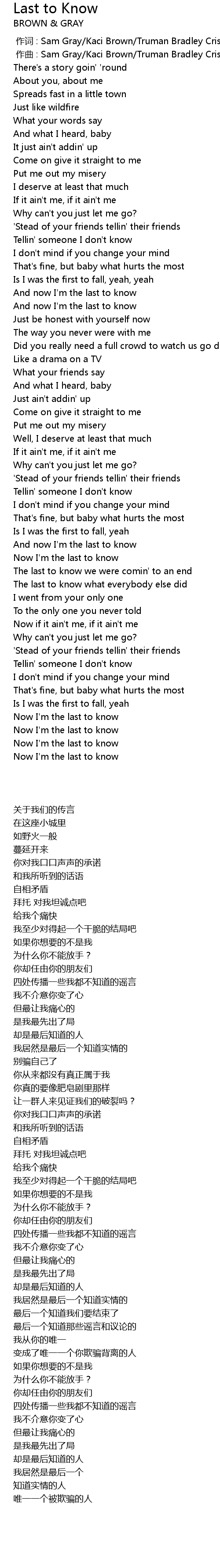 | 歌曲 | Last to Know |