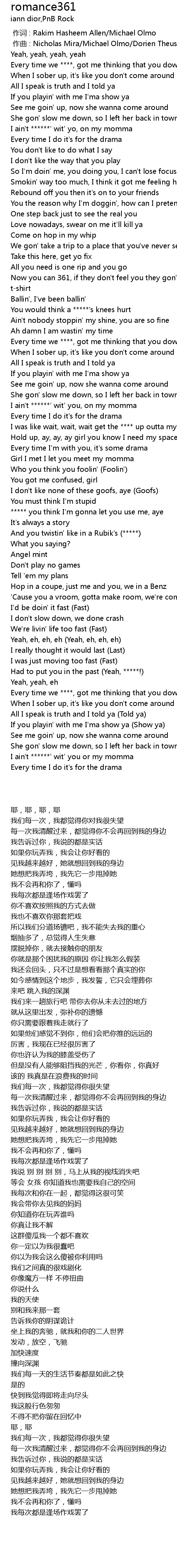 | [00:00.000] | 作词 : Rakim Hasheem Allen/Michael Olmo |