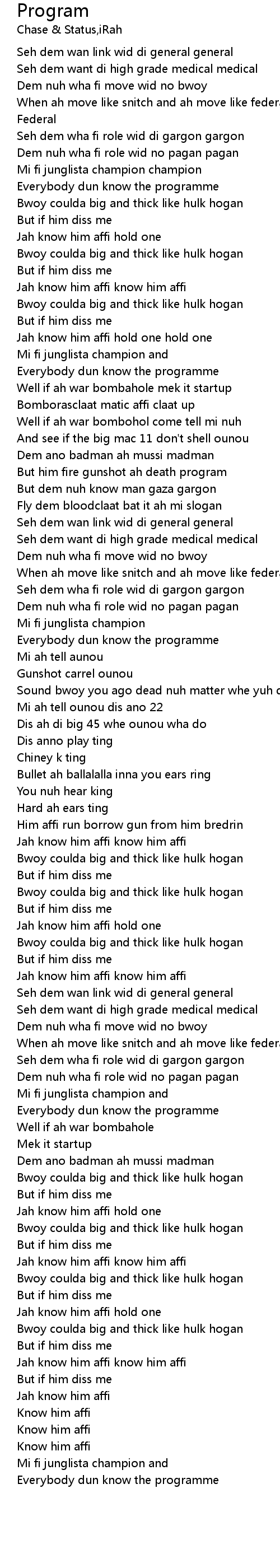 | [00:49.33] | Bwoy coulda big and thick like hulk hogan |
