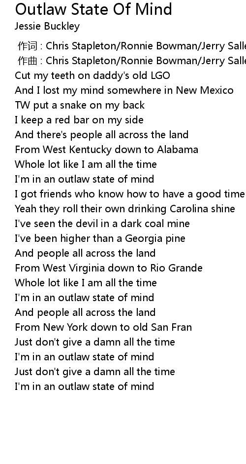 | [00:00.000] | 作词 : Chris Stapleton/Ronnie Bowman/Jerry Salley |