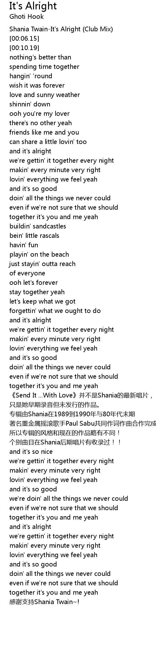 | [00:01.03] | Shania TwainIt' s Alright Club Mix |