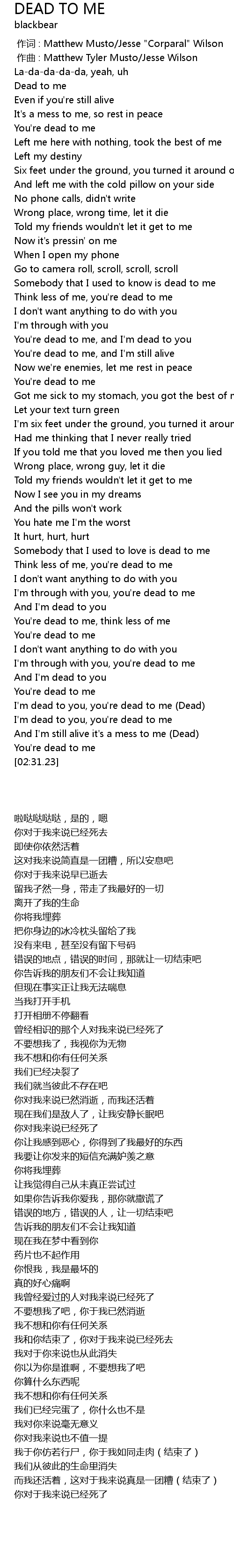 | [02:18.10] | I'm dead to you, you're dead to me (Dead) |
