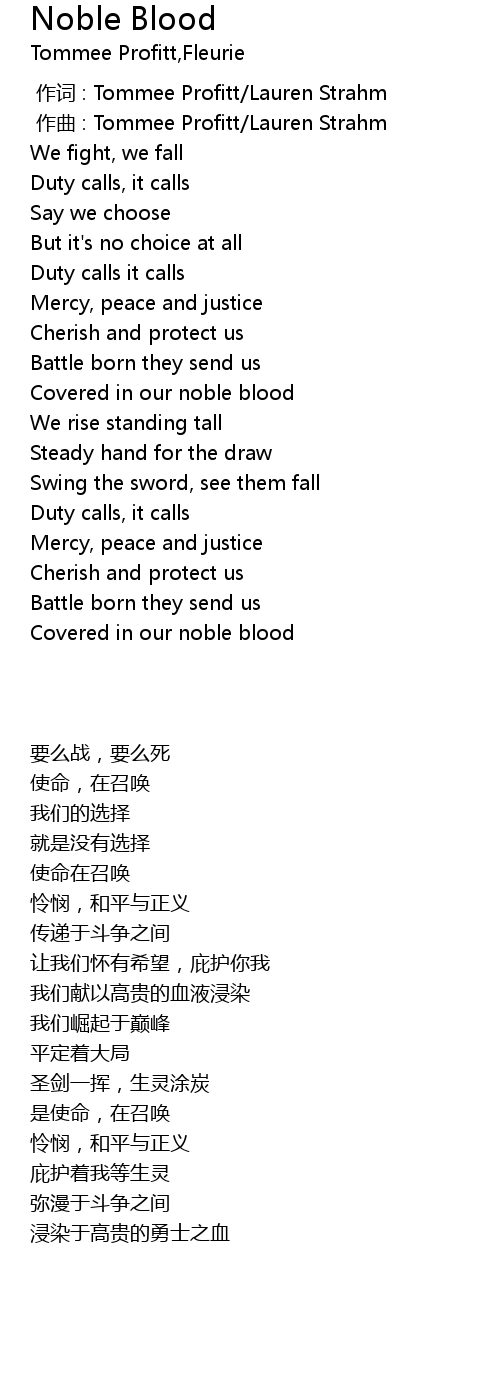| 歌曲 | Noble Blood |