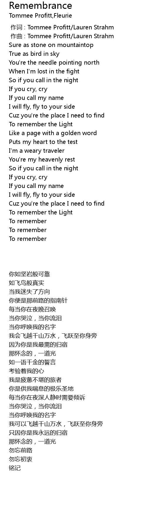 | 歌曲 | Remembrance |