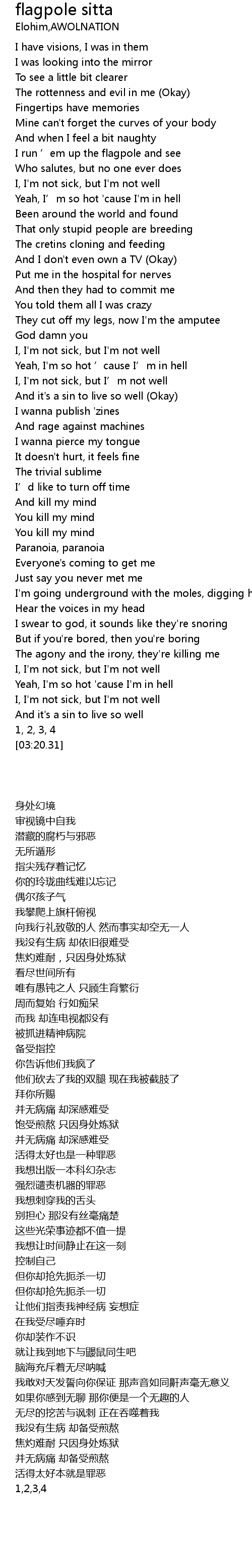 | [03:05.59] | I, I'm not sick, but I'm not well |