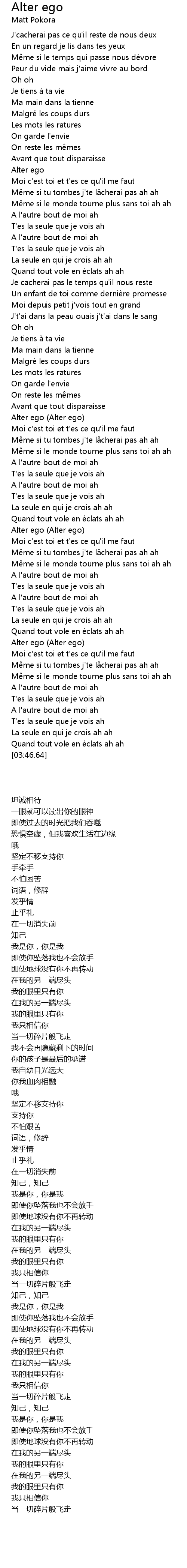 | [02:35.98] | Alter ego (Alter ego) |