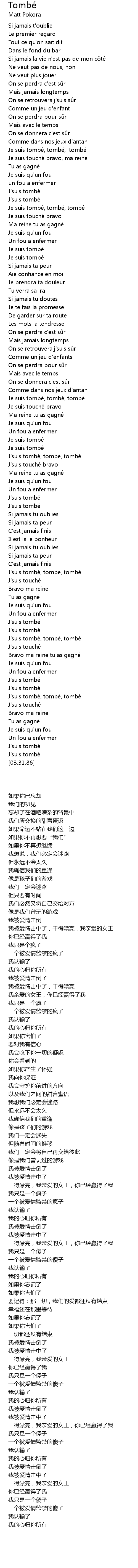 | [00:42.10] | Je suis tombé, tombé, tombé |