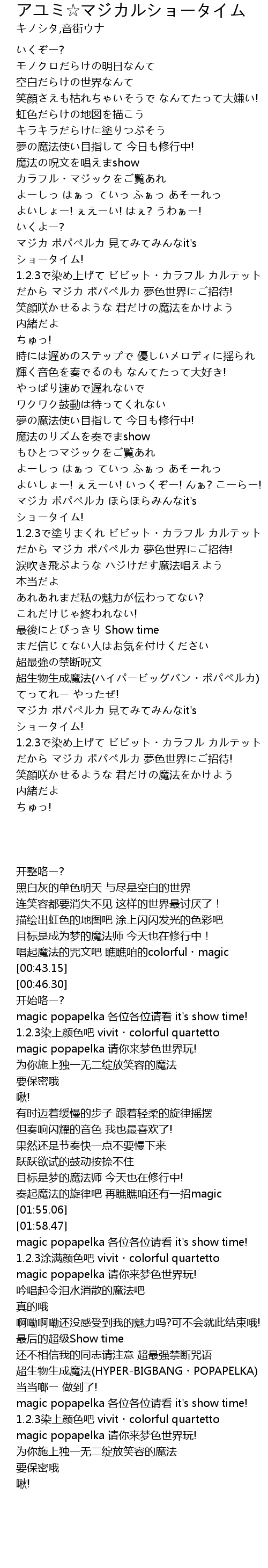 | [02:01.56] | マジカ ポパペルカ ほらほらみんなit's ショータイム! |