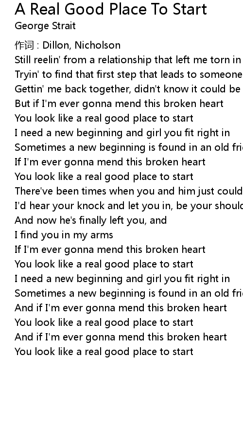 | And if I'm ever gonna mend this broken heart | |