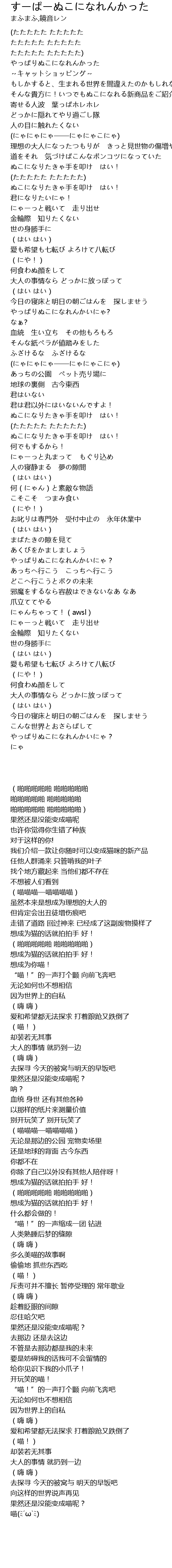 | [03:14.81] | 果然还是没能变成喵呢? |