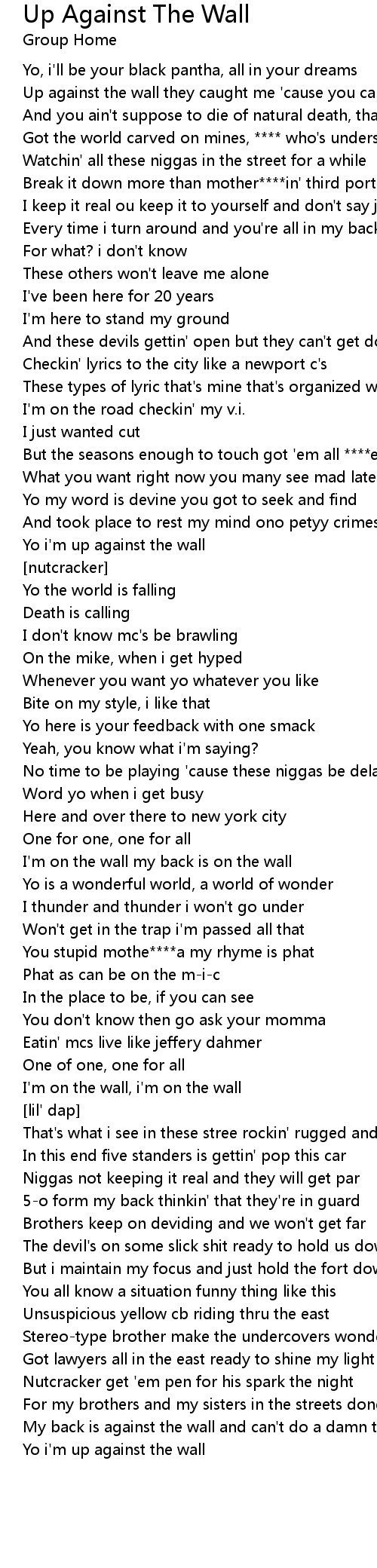 Yo i'm up against the wall |