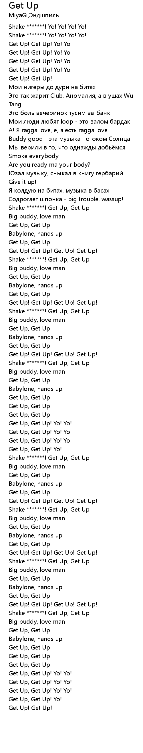 | [01:03.94] | Shake *******! Get Up, Get Up |