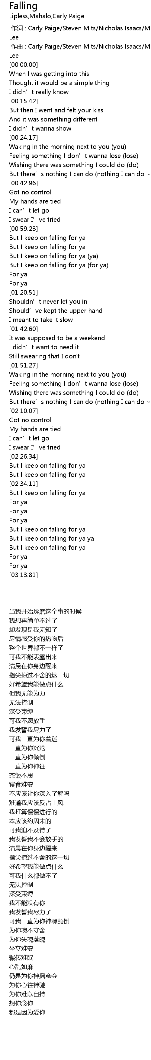 | [01:12.73] | But I keep on falling for ya (for ya) |