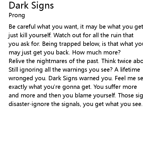 wronged you. Dark Signs warned you. Feel me self destruct You're gonna get exactly what you're gonna get. You suffer more |