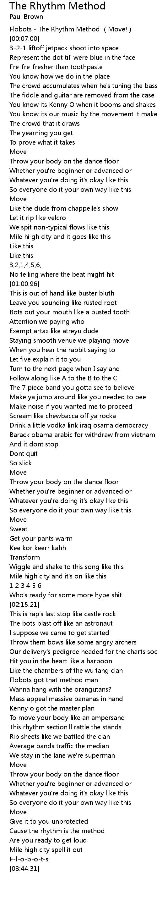 | [00:02.00] | Flobots The Rhythm Method Move! |