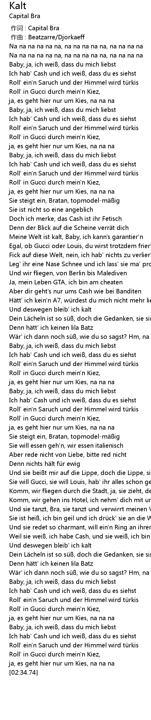 | [02:26.49] | Ich hab' Cash und ich weiß, dass du es siehst |