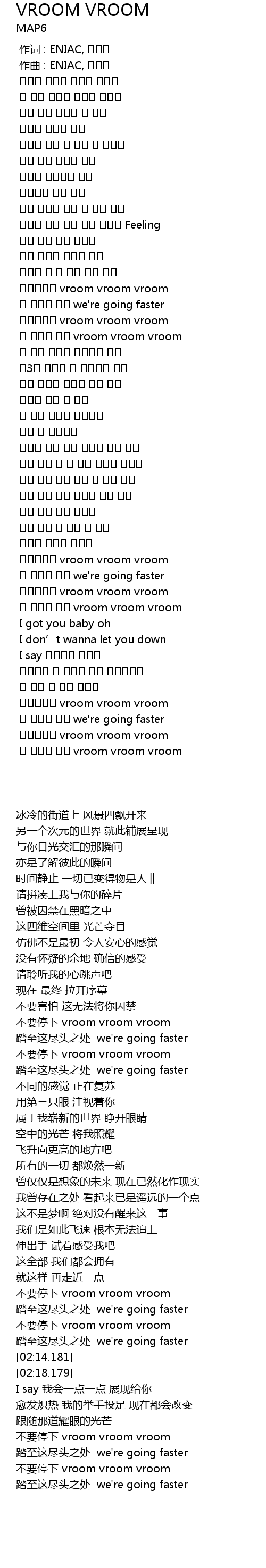 | [02:35.876] | 不要停下 vroom vroom vroom |