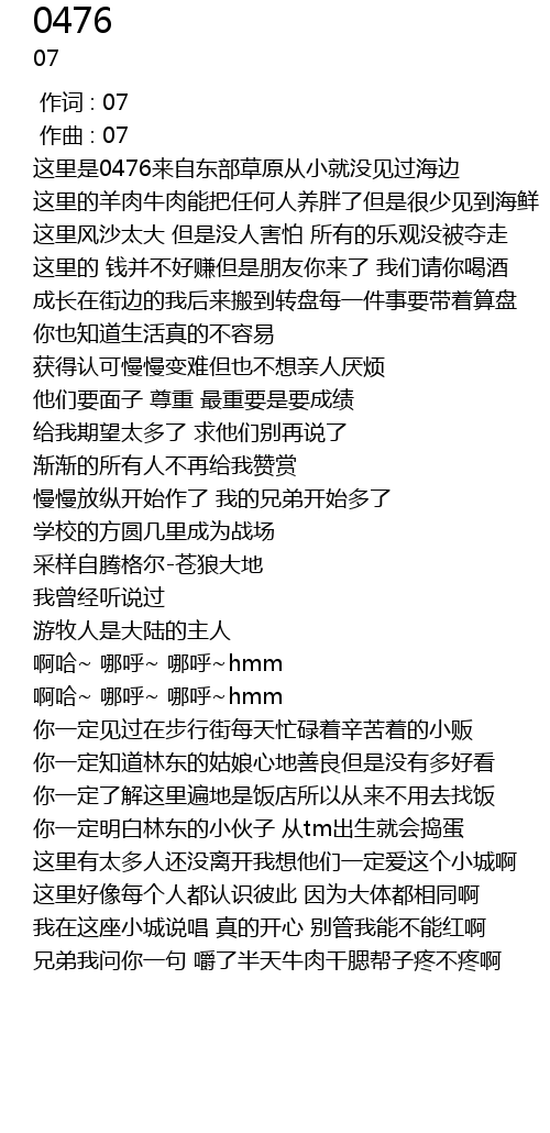 | [01:26.869] | 我在这座小城说唱 真的开心 别管我能不能红啊 |