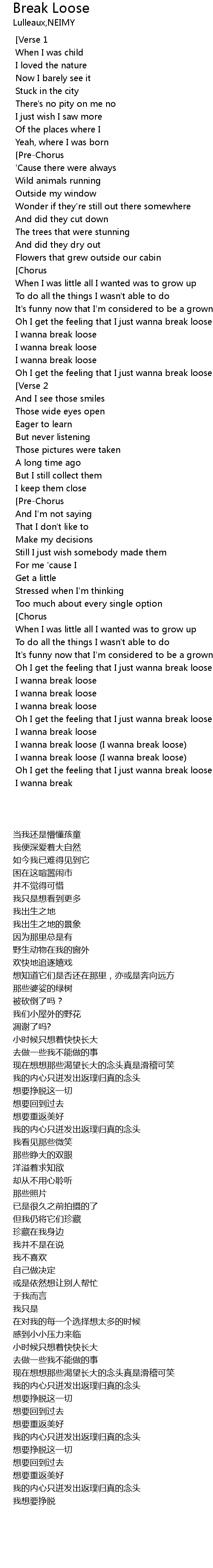 I wanna break loose |